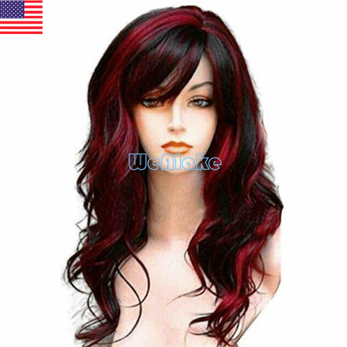 Long Hair Wigs Wavy Curly Glamorous Women Black Red Highlights Synthetic Cosplay Ebay