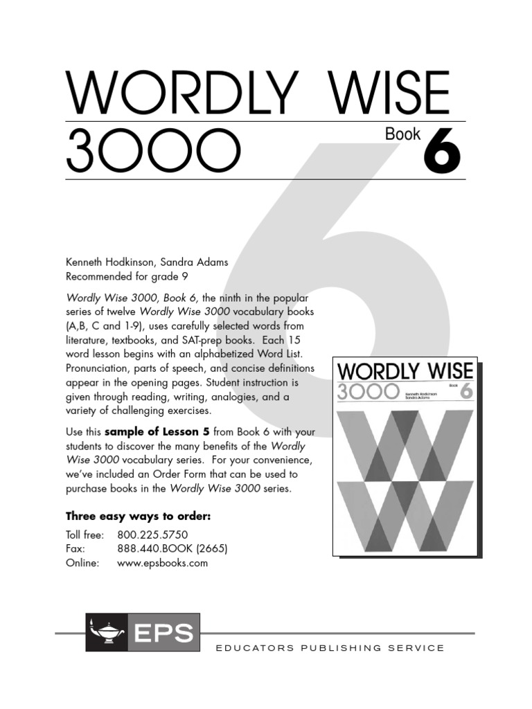 Wordly Wise 3000 4th Edition 6-12 Sample Lessons was published by School. Check Pages 1-50 of Wordly Wise 3000 4th Edition 6-12 Sample Lessons in the flip PDF version. A vocabulary list featuring Wordly Wise 3000-Book 9-Lesson 6.